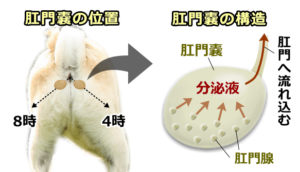 ここを絞っていきます。うんちと一緒に排泄するんですが、特に小型犬や子犬はうまく出せずに溜まってしまうことがあるんですね。